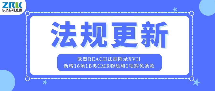 2025年8月11日,歐盟在其官方公報上發布(EU) 2025/1731法規,修訂了REACH法規附件XVII中關于致癌、致突變、致生殖毒性(CMR)物質的限制清單。此次修訂新增了16項1B類CMR物質和1項豁免條款,并將于2025年9月1日起生效。